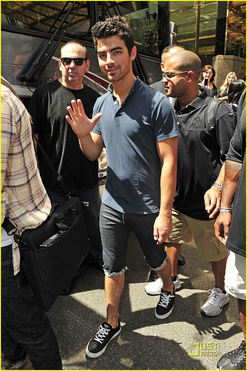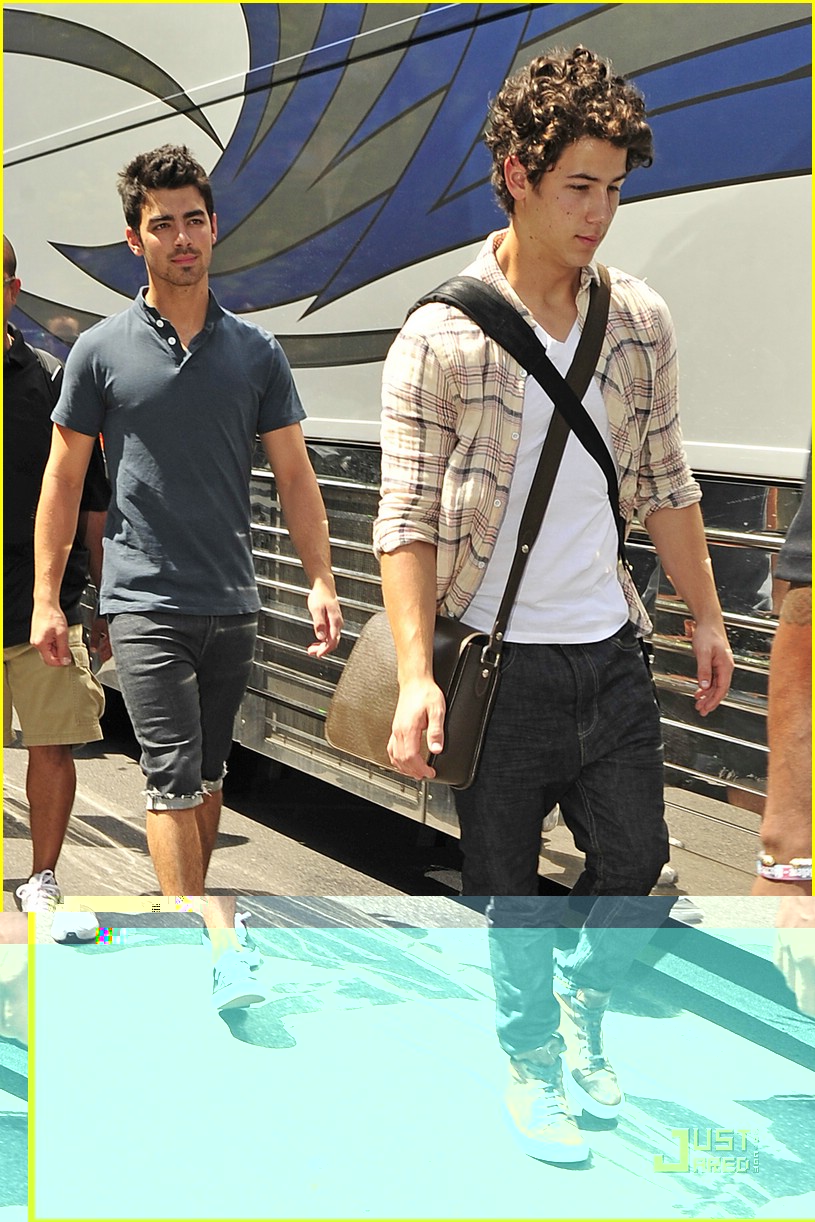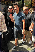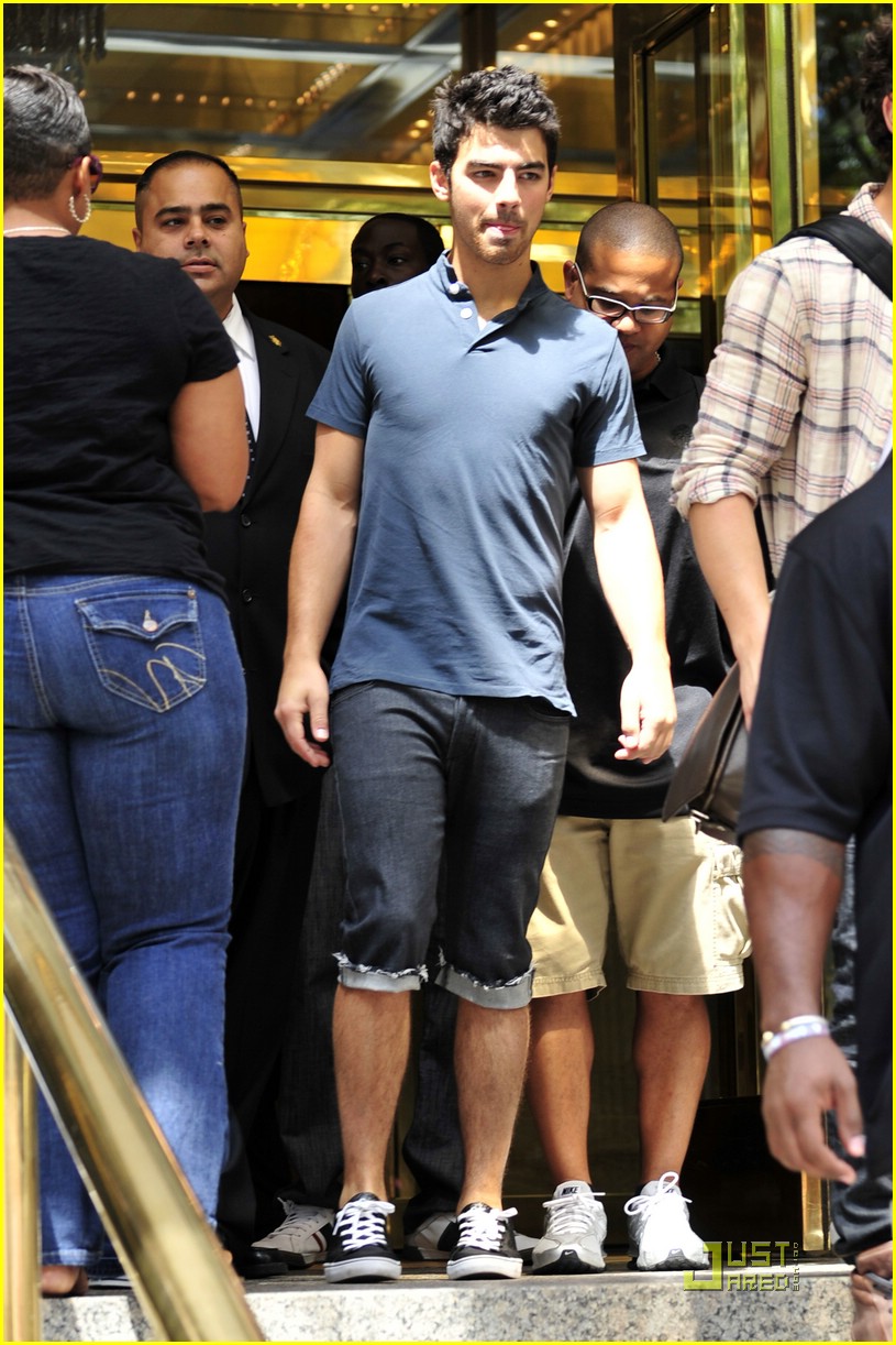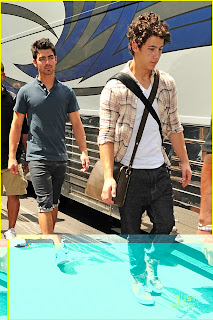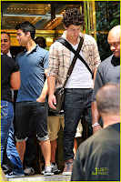 Nick e Joe foram vistos saindo de hotel 'Trump' e indo em direção ao ônibus de turnê deles, hoje a tarde.