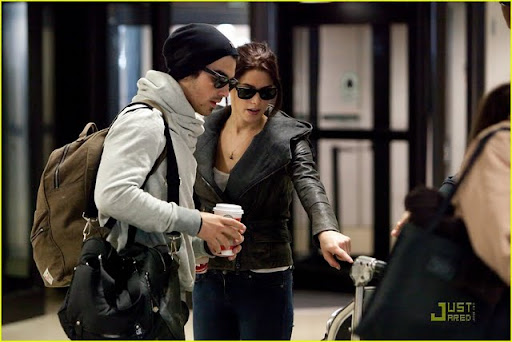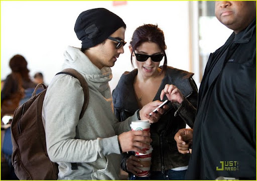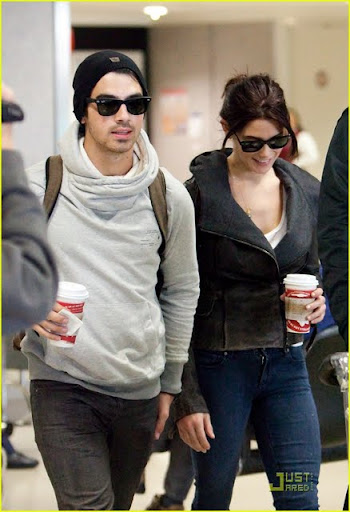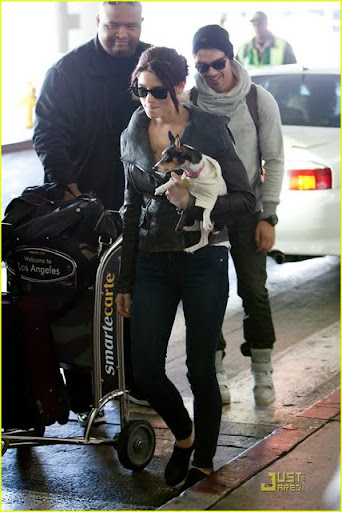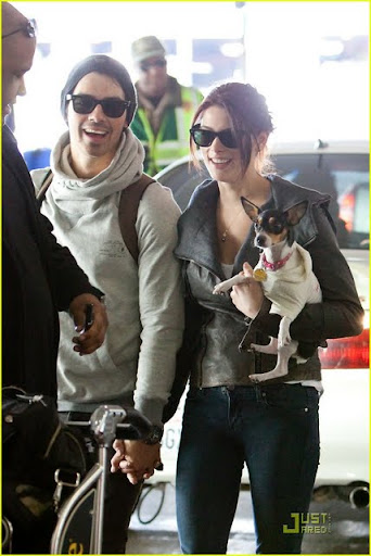Com o filhote Marlo em seus braços, Ashley Greene está toda sorrisos enquanto ela chega no LAX, aeroporto de Los Angeles, com o namorado Joe Jonas na tarde de Sábado, 21 de Novembro.